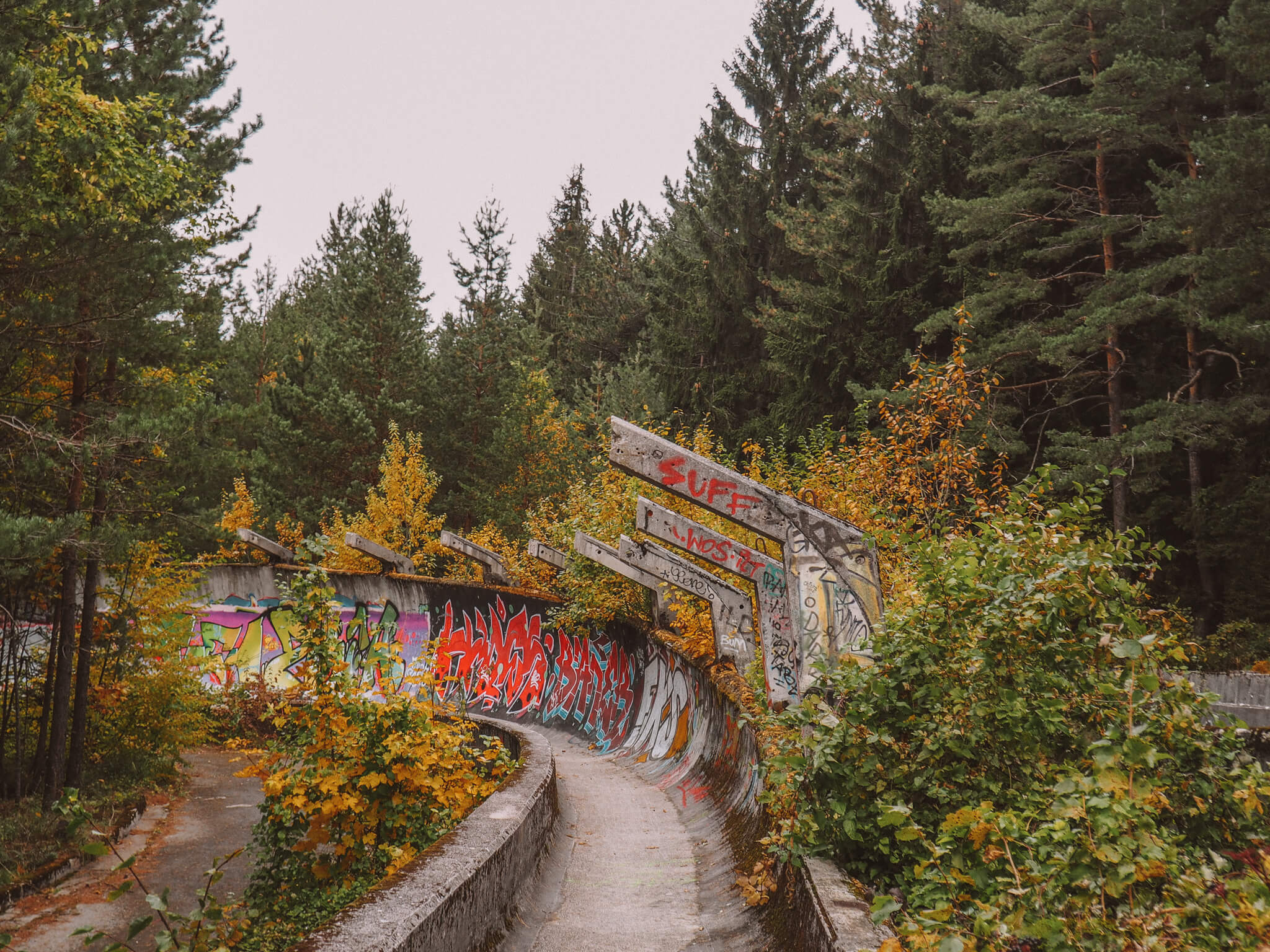 Wenn du Sarajevo im Herbst besuchst, solltest du unbedingt mit der Seilbahn auf den Trebević fahren. Entlang der alten Bobbahn kannst du dann in die Stadt hinunterspazieren. Die alte Bobbahn der Olympischen Winterspiele von 1984 ist inzwischen auch mit QR-Codes ausgestattet, die unser Bekannter Mirko dort diesen Herbst angebracht hat, sodass du die Geschichte der Spiele noch einmal nacherleben kannst, während du sie entlangspazierst. Mehr Infos zu dem Weiterbildungspfad findest du hier.